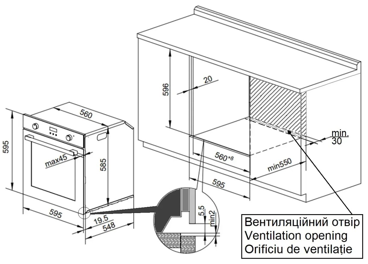 Măsuri de incorporare59.5x56x56 cm