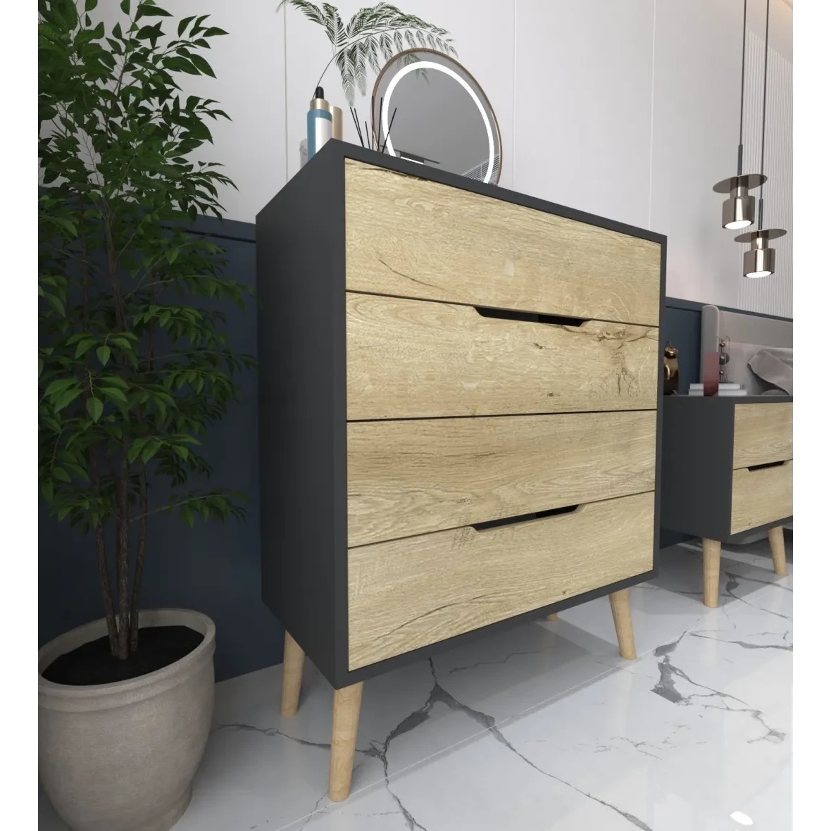 Comodă Trendy Flora Anthracite/Sapphire Oak 78x95x45cm (GTR008146)