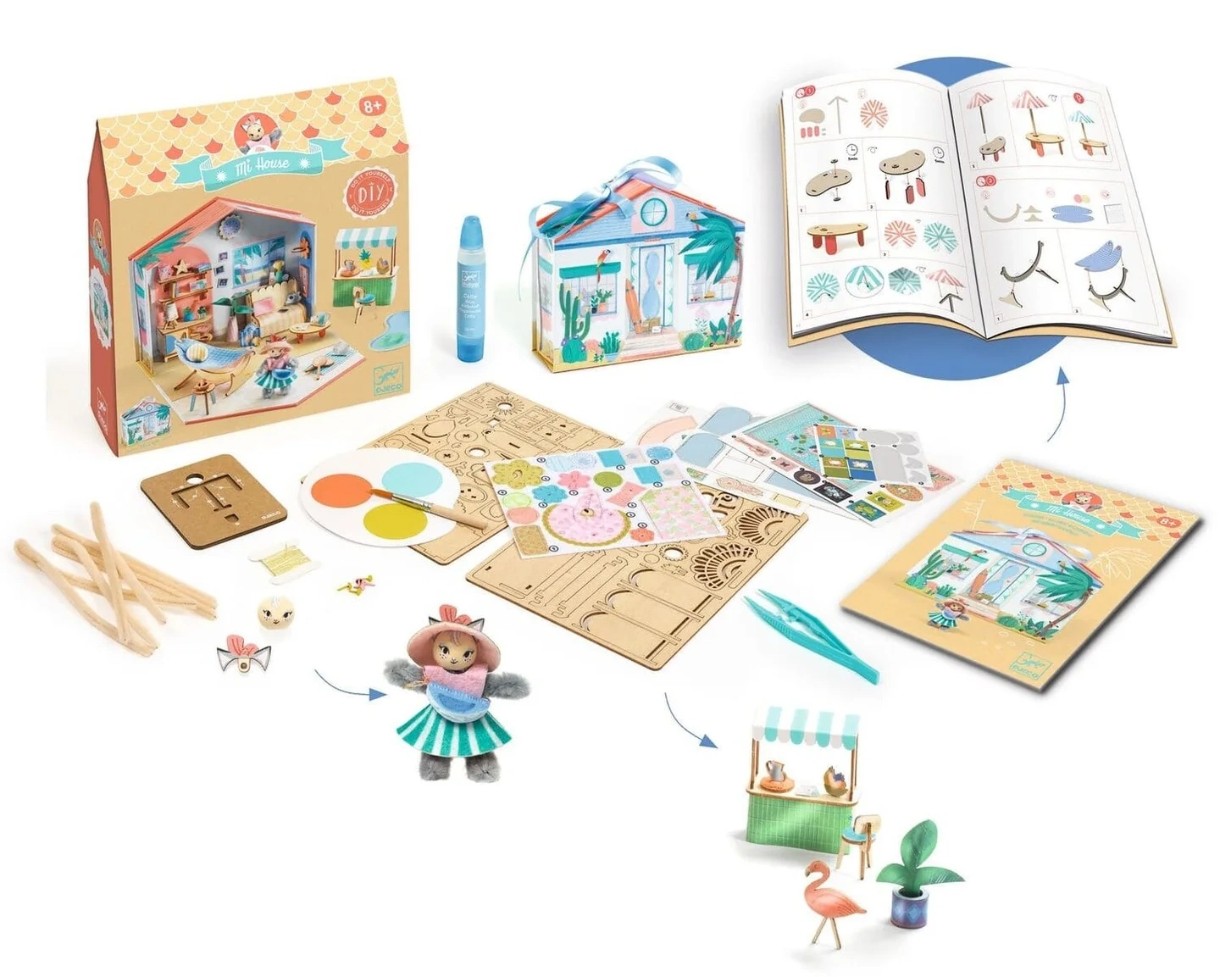 Mi House – Mia este un set creativ care îi ajută pe copii să descopere arta construcției de miniaturi. Pas cu pas, cei mici sunt ghidați să picteze, să asambleze și să lipească, construind o căsuță miniaturală cu mobilier și un personaj adorabil.
