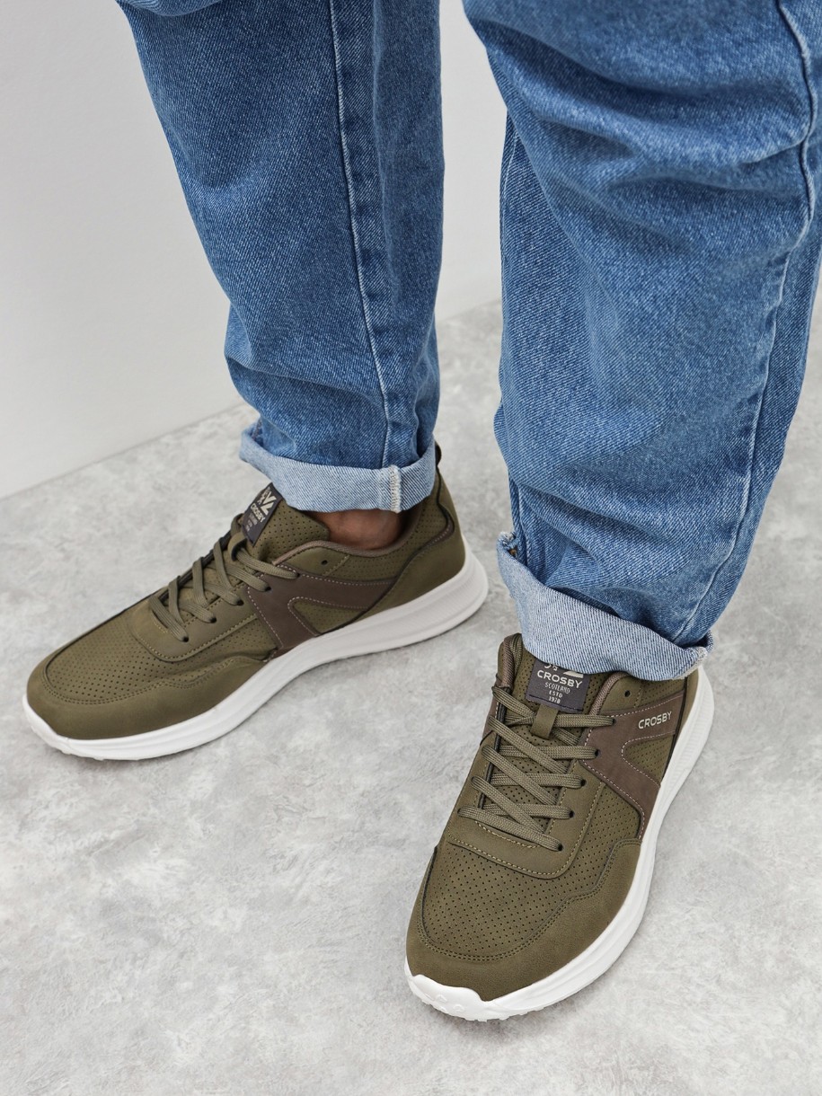 Explorați în fiecare zi cu stil cu adidașii sport CROSBY pentru bărbați, ideali pentru utilizare în toate anotimpurile. Acești adidași sunt confecționați din nubuc artificial kaki, care combină durabilitatea pielii artificiale cu moliciunea nubucului pentru un aspect elegant și modern.