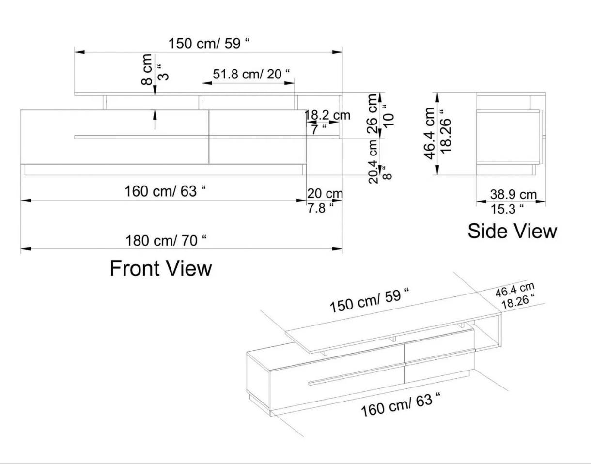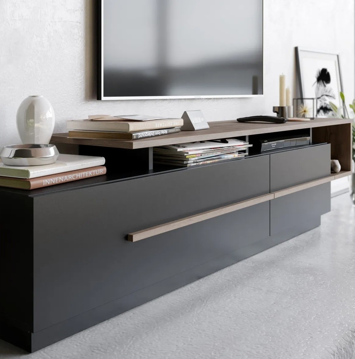 Comodă TV Trendy Pia Black/Walnut 180x46.8x38.9cm GTR006412