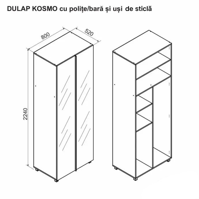 Dulap Ambianta Kosmo 0.8m Glass Door Catania/Fungo