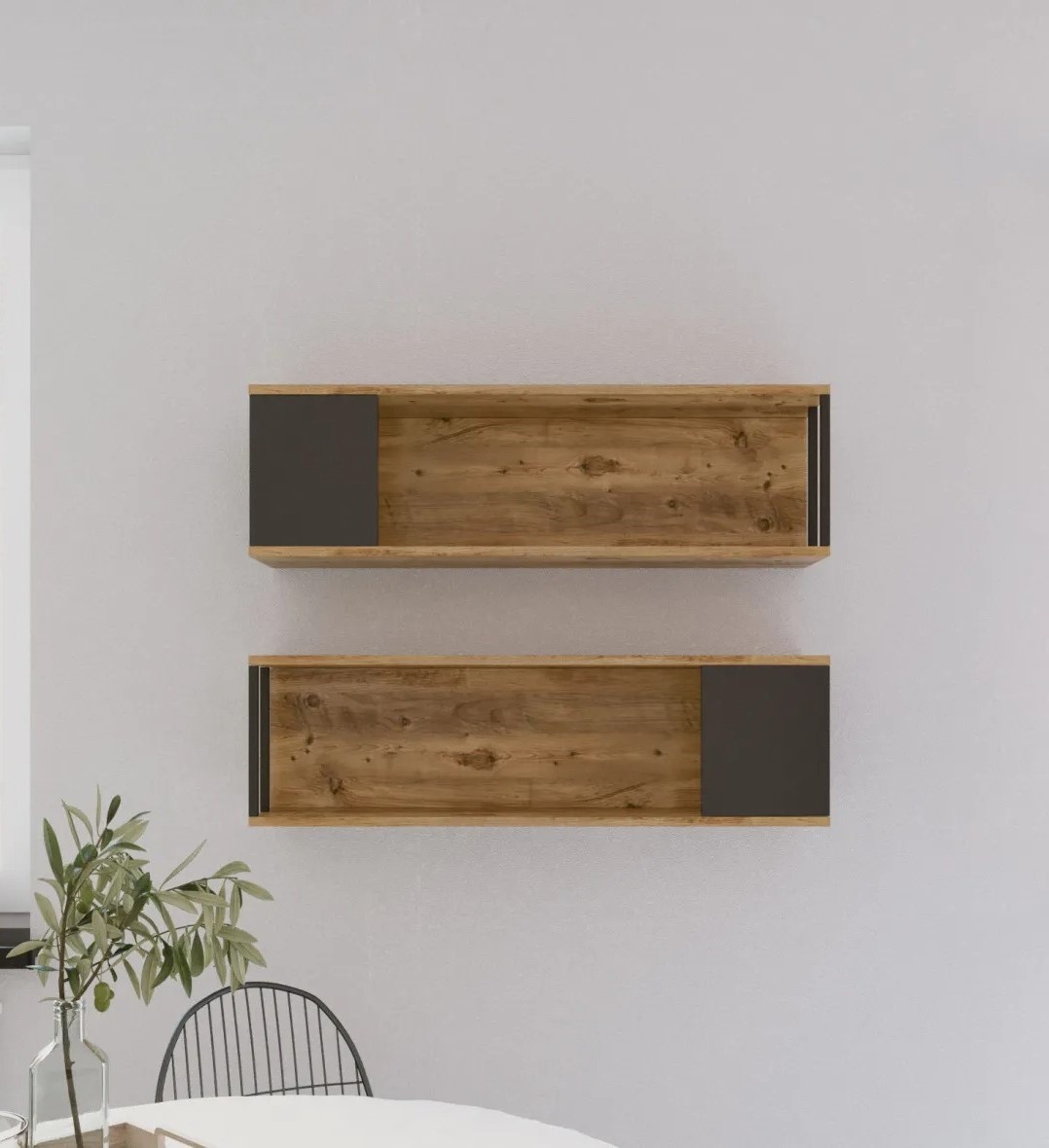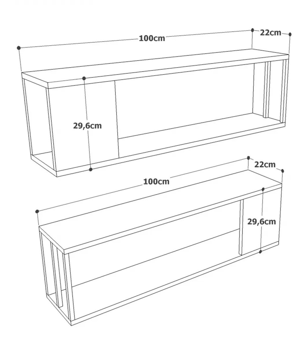 Acest raft de perete se completează fără efort cu orice decor existent, adăugând o notă de rafinament spațiului dvs. Lățimea de 100 cm, 29.6 cm înălțime și 22 cm adâncime (2 bucăți) oferă spațiu amplu pentru toate nevoile dvs. de depozitare, ceea ce îl face potrivit atât pentru apartamente mici, cât și pentru case mari.