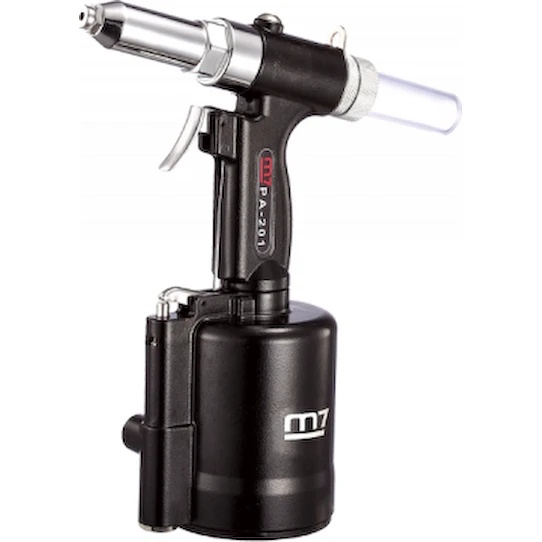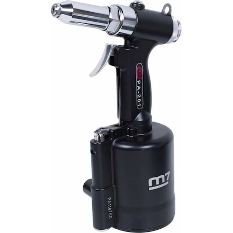 Pneumohidraulică de nituri MIGHTY SEVEN PA-201 funcționează cu nituri de extragere de diferite diametre. Pneumonituitorul este ușor și convenabil de utilizat. Datorită dimensiunilor mici și greutății, nituitorul MIGHTY SEVEN PA-201 nu cauzează dificultăți la depozitare și transport. Carcasa metalică rezistentă garantează o durată lungă de viață a dispozitivului.