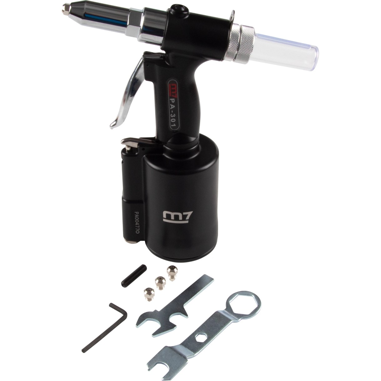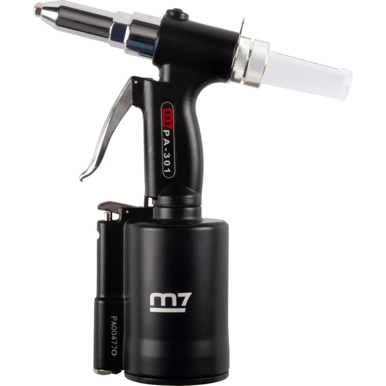 MIGHTY SEVEN PA-301 - un dispozitiv modern pentru conectarea diferitelor piese prin intermediul niturilor. Acest aparat este utilizat pe scară largă în industria aviatică, auto, precum și în construcția navală. Unitatea funcționează cu aer comprimat, ceea ce asigură o productivitate ridicată a muncii cu un minim de efort. Pentru conectarea заклепочника la compresor, se recomandă utilizarea unui furtun cu diametrul interior de 10 mm.
