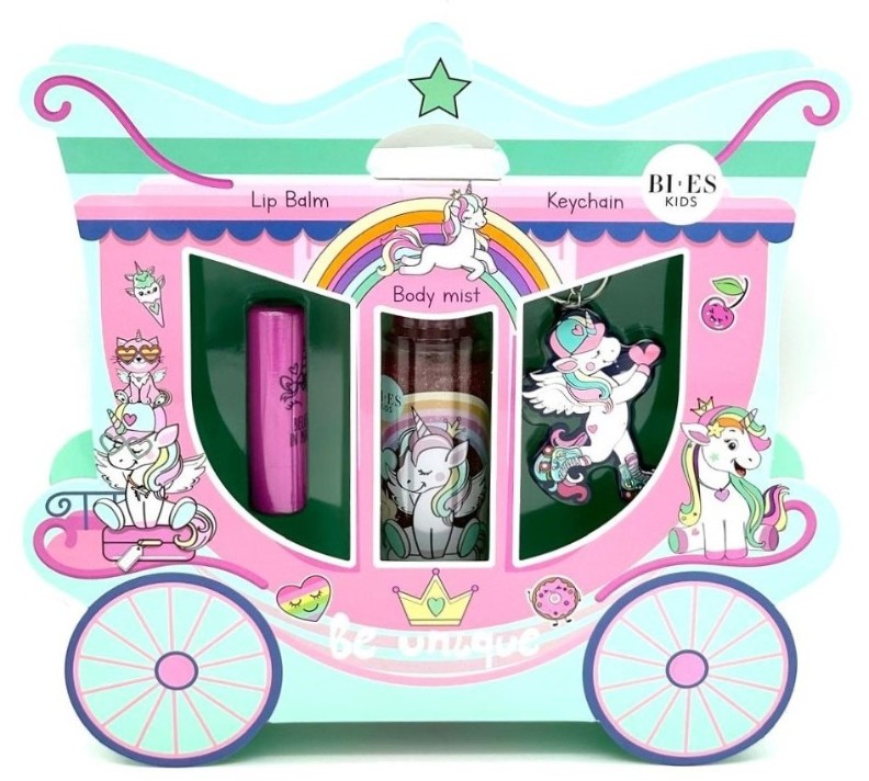 Set cadou pentru copii Bi-Es Unicorn Body Mist 100ml + Lip Balm + Key Ring