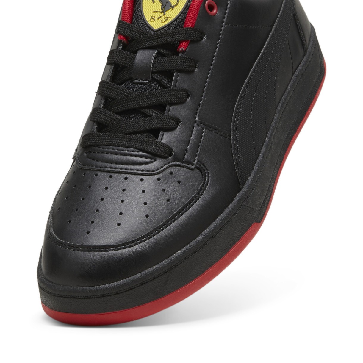 Ghete pentru bărbați Puma Ferrari Caven 2.0 prezintă o siluetă clasică de baschet din anii 1980, completată cu detalii din piele moale, suprapuneri la vârf și o talpă intermediară multistrat. Noile produse sunt împodobite cu culorile oficiale și logo-ul iconic al semnăturii «Armăsarilor Roșii» — echipa de curse Scuderia Ferrari, cu spiritul său neobosit, setea de viteză și amestecul unic de tradiție și inovație.
