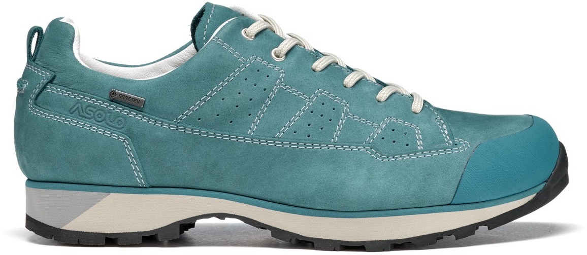 Partea superioară din piele nubuc impermeabilă oferă suport, protecție și confort superior. Căptușeala Gore-Tex garantează impermeabilitate și respirabilitate, în timp ce gulerul din piele oferă un confort excepțional. Talpa intermediară microporoasă oferă stabilitate, amortizare și suport anatomic. Talpa exterioară din cauciuc Asolo/Vibram Ground este o construcție cu autocurățare și folosește un compus MegaGrip pentru tracțiune și performanță extremă pe teren umed și uscat. În completarea modelului este botul de cauciuc pentru o protecție suplimentară în față și un sistem de șireturi pentru legare rapidă și precisă.