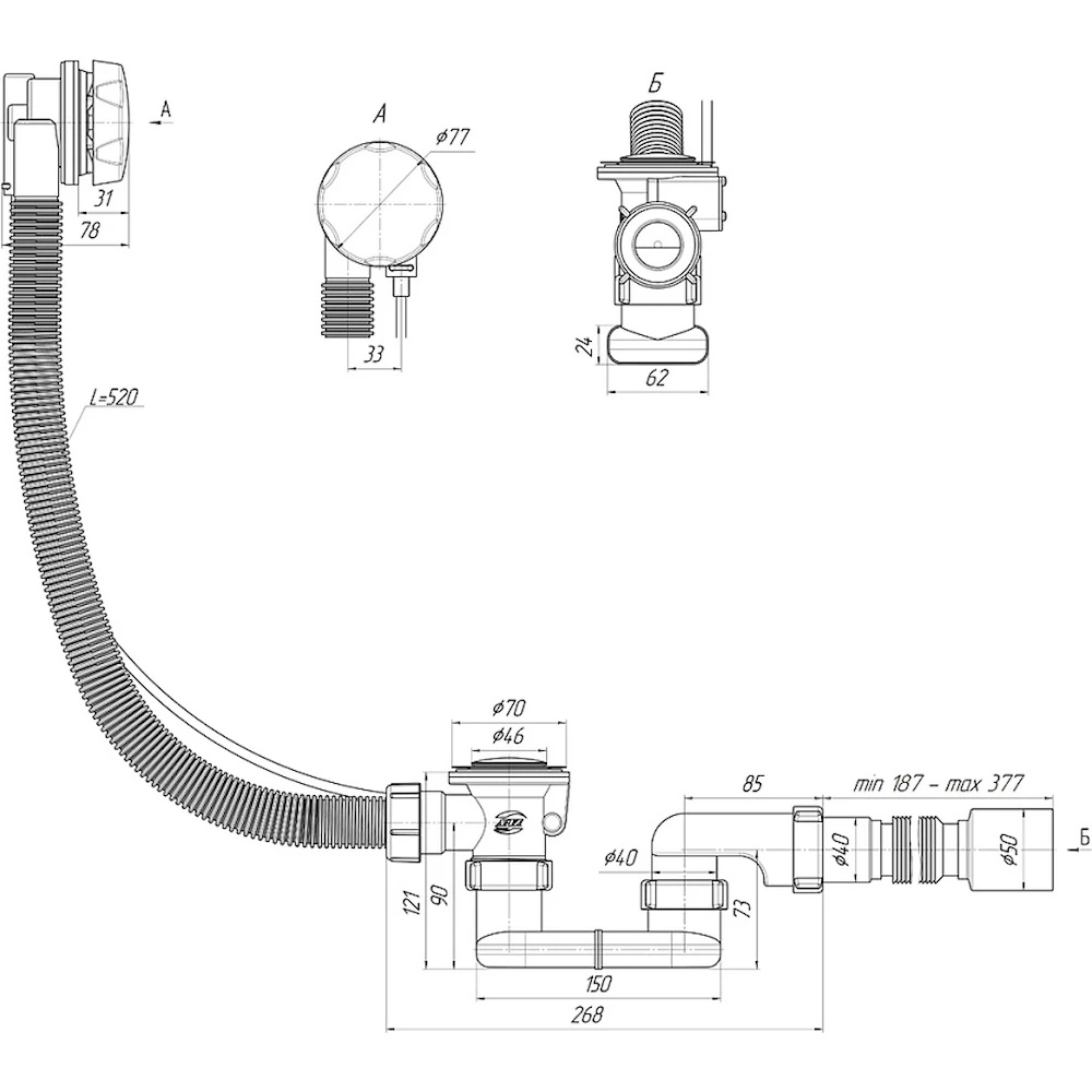 Lungime țeavă flexibilă187-377 mm