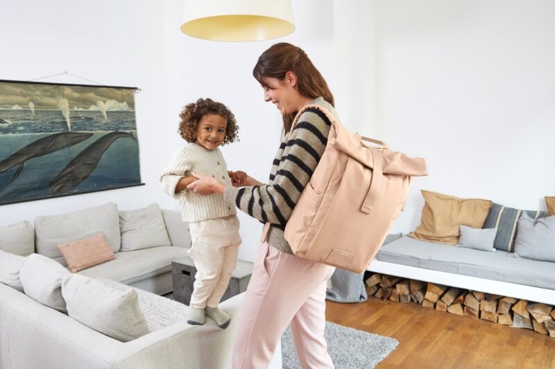 Rucsac pentru mamici Lassig GRE Rolltop Up Peach Pink LS1103038853