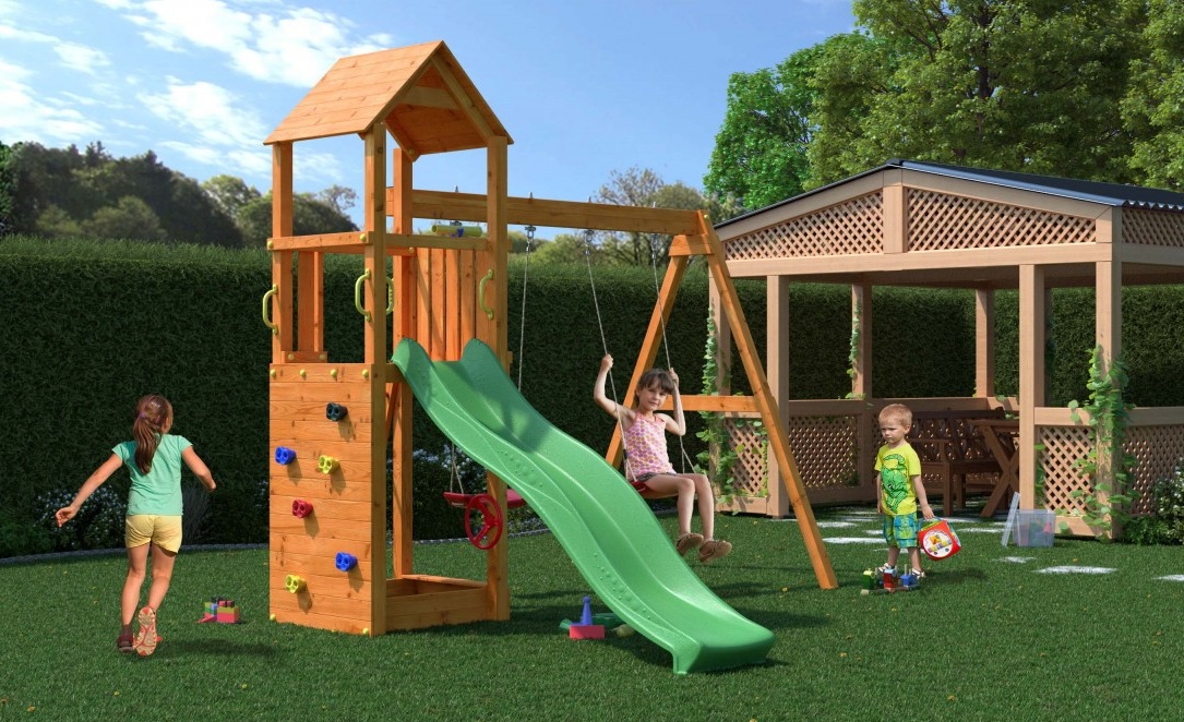 In setnisipar, tobogan, leagăne, scara, perete de alpinism