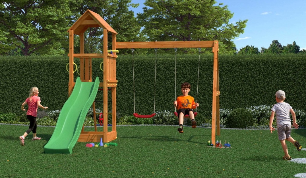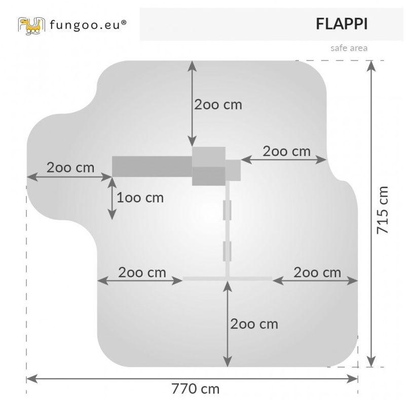 Creând seturile noastre, dorim să aducem bucurie pură, să lăsăm în memoria copiilor multe amintiri frumoase. FUNGOO FLAPPI este mai mult decât o simplă platformă. Este o garanție pentru un zâmbet pe fața fiecărui copil. Leagănele și toboganul îi vor oferi copilului multă mișcare. Accesoriile sub formă de telescop și volan își vor stimula imaginația. Peretele de cățărare va face urcarea pe scări mai puțin plictisitoare. Spațiul sub platforma locului de joacă pentru copii poate fi amenajat ca o cutie de nisip. Toate acestea sunt realizate din materiale solide și durabile, care nu își vor pierde aspectul și culoarea atrăgătoare pentru mult timp. Toate aceste elemente fac din FLAPPI o platformă de joacă ideală pentru orice grădină.