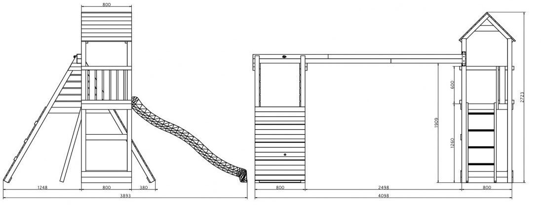 In setnisipar, tobogan, leagăne, scara, perete de alpinism