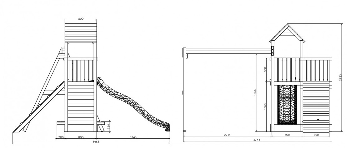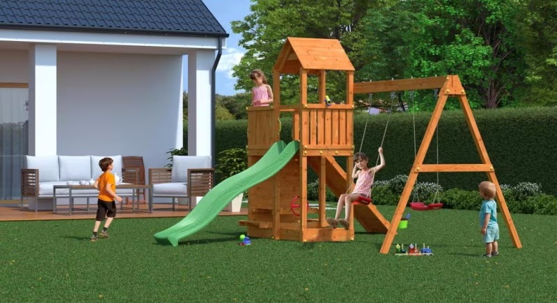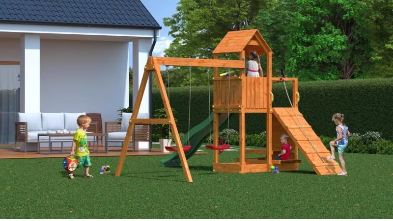 In setnisipar, tobogan, leagăne, scara, perete de alpinism, masă