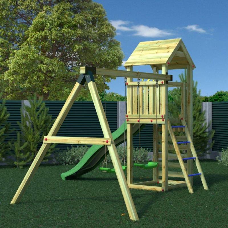 In settobogan, leagăne, scara, nisipar