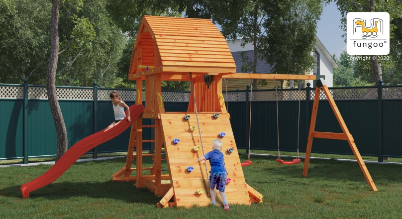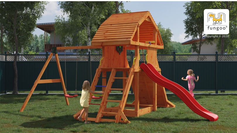 In setnisipar, tobogan, leagăne, scara, perete de alpinism