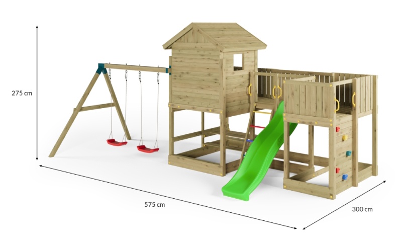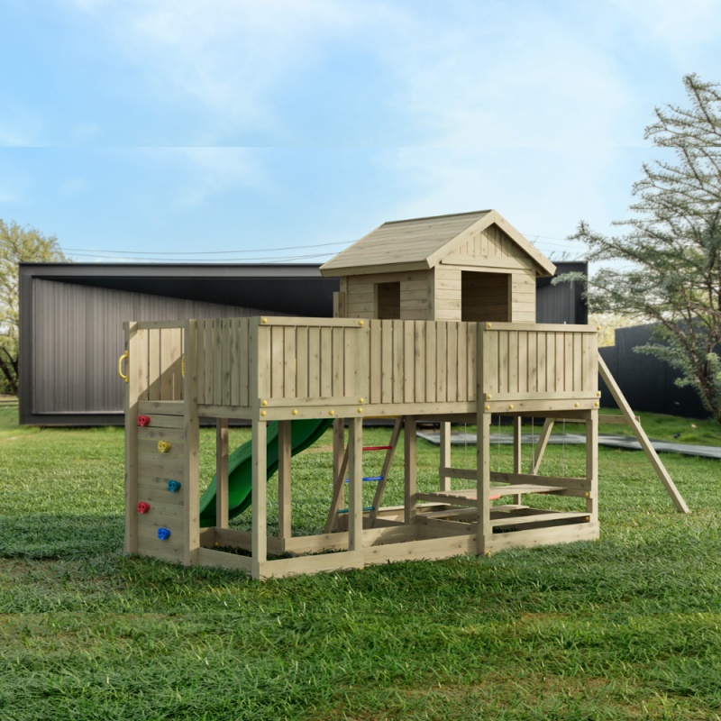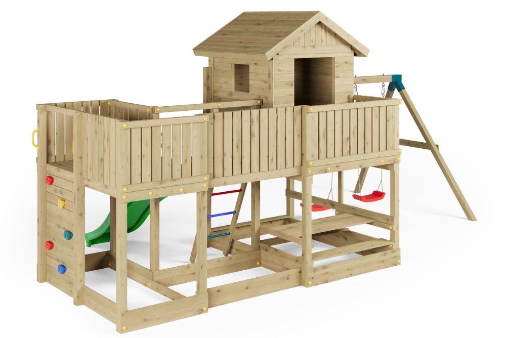 Căsuța de joacă din lemn Longstepper este ideală pentru a le oferi copiilor dumneavoastră o zonă de joacă sigură și distractivă. Având o căsuță de joacă spațioasă cu acoperiș din lemn, un tobogan, două leagăne, o masă de picnic și un perete de cățărat, această structură stimulează imaginația și mișcarea, oferind ore întregi de distracție în aer liber. Fabricată din materiale durabile și sigure, este locul de joacă perfect pentru grădina dumneavoastră.
