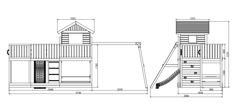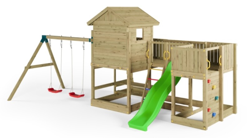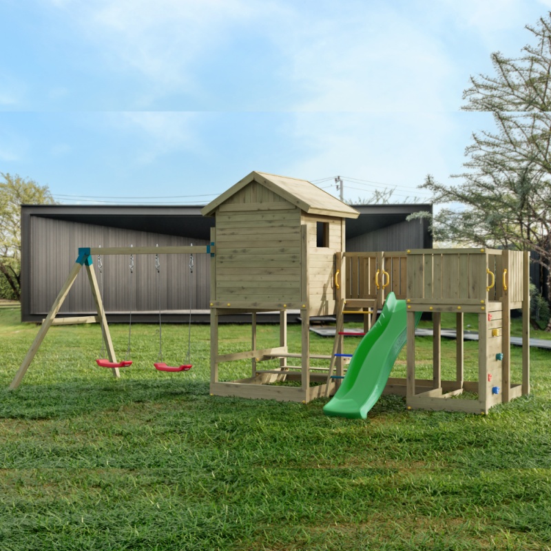 In settobogan, leagăne, scara, perete de alpinism, casa