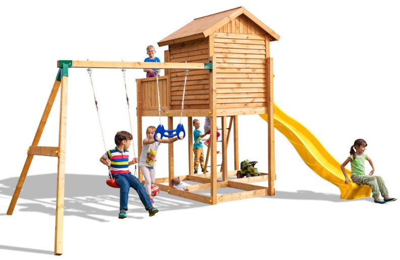 In settobogan, leagăne, scara, casa