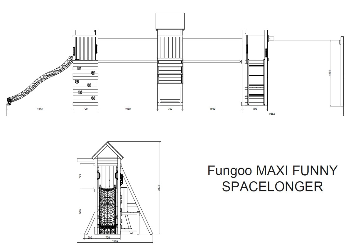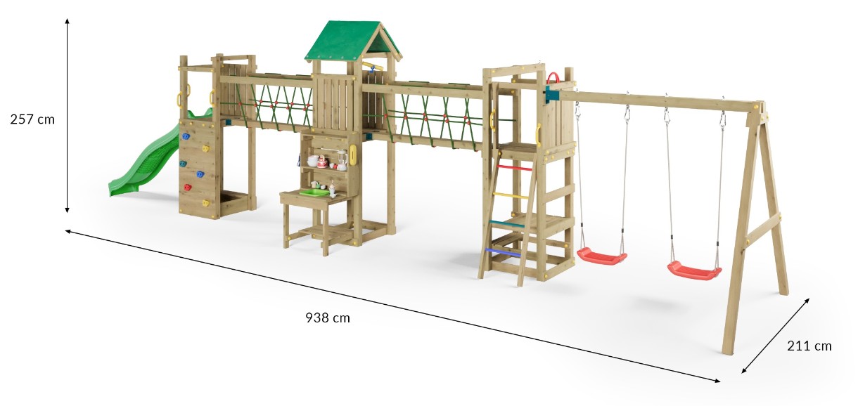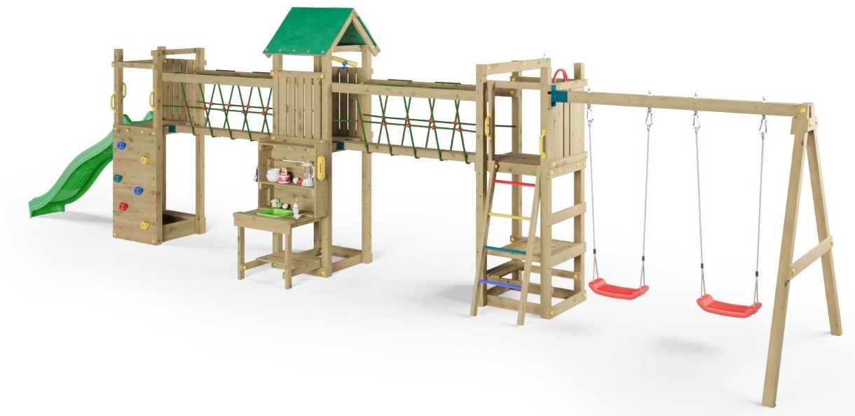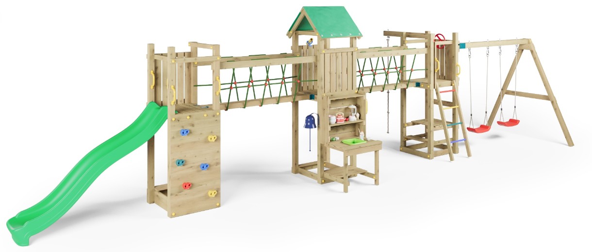 In settobogan, leagăne, scara, perete de alpinism, pod