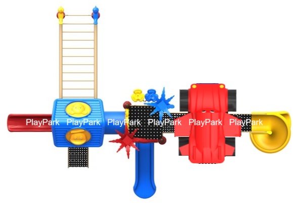 Include: doua Scări cu balustrade (mare, mica), doua Turnuri cu acoperiș, Turn fara acoperiș, Tubul - conectearea turnurilor, doua Tobogane drept (Н=1m), Tobogan spiralat (Н=1,5m), Balcon, Perete suedez, Bare clasic de catarare, Scara de catarare, este decorat cu elemente decorative luminoase.