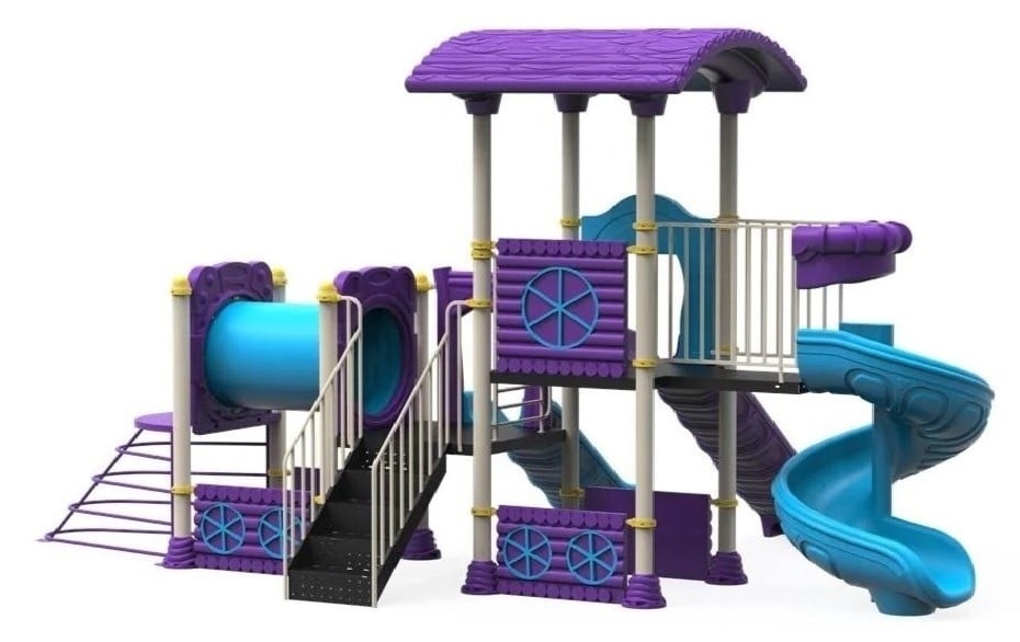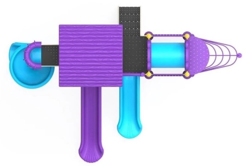 Include: Scara cu balustrade, Turn cu acoperiș, doua Turnuri fara acoperiș, Balcon, doua Tobogane drepte (Н=1,5m; Н=1m), Tobogan spiralat (Н=1,5m), Tunel, element pentru catarare, este decorat cu elemente tematice.