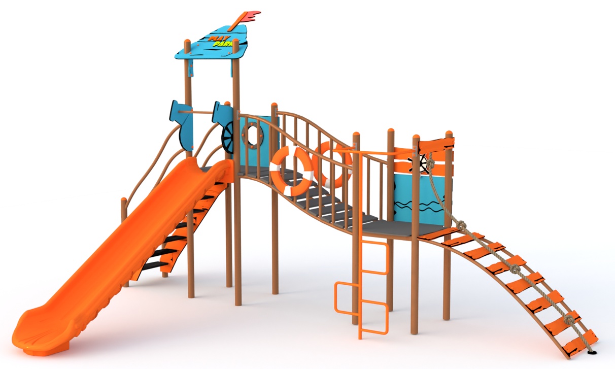 Include: două Turnuri sunt conectate printr-un Podet tip „Val”, Scara cu balustrade, Tobogan (H=1,5m), Scară de tip tambur cu traversă și frânghie, Scară în spirală, elemente decorative - "tunuri de batalie", "colac de salvare".