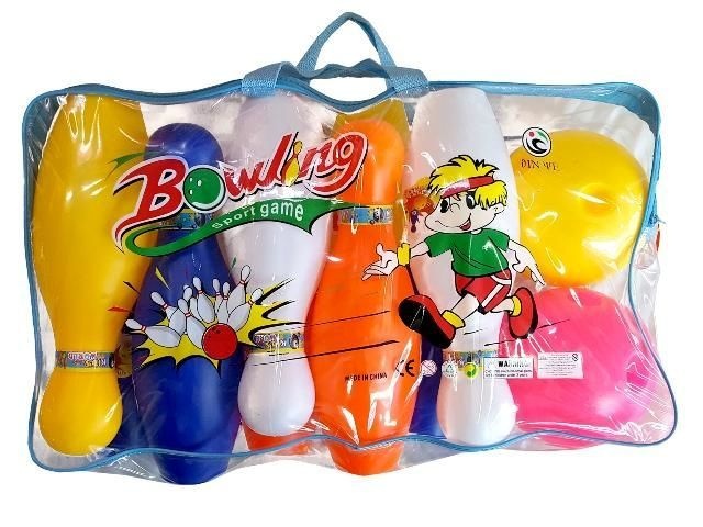 Joc de bowling din material moale si inofensiv, confectionat din plastic de inalta calitate, cu punga de depozitare inclusa.