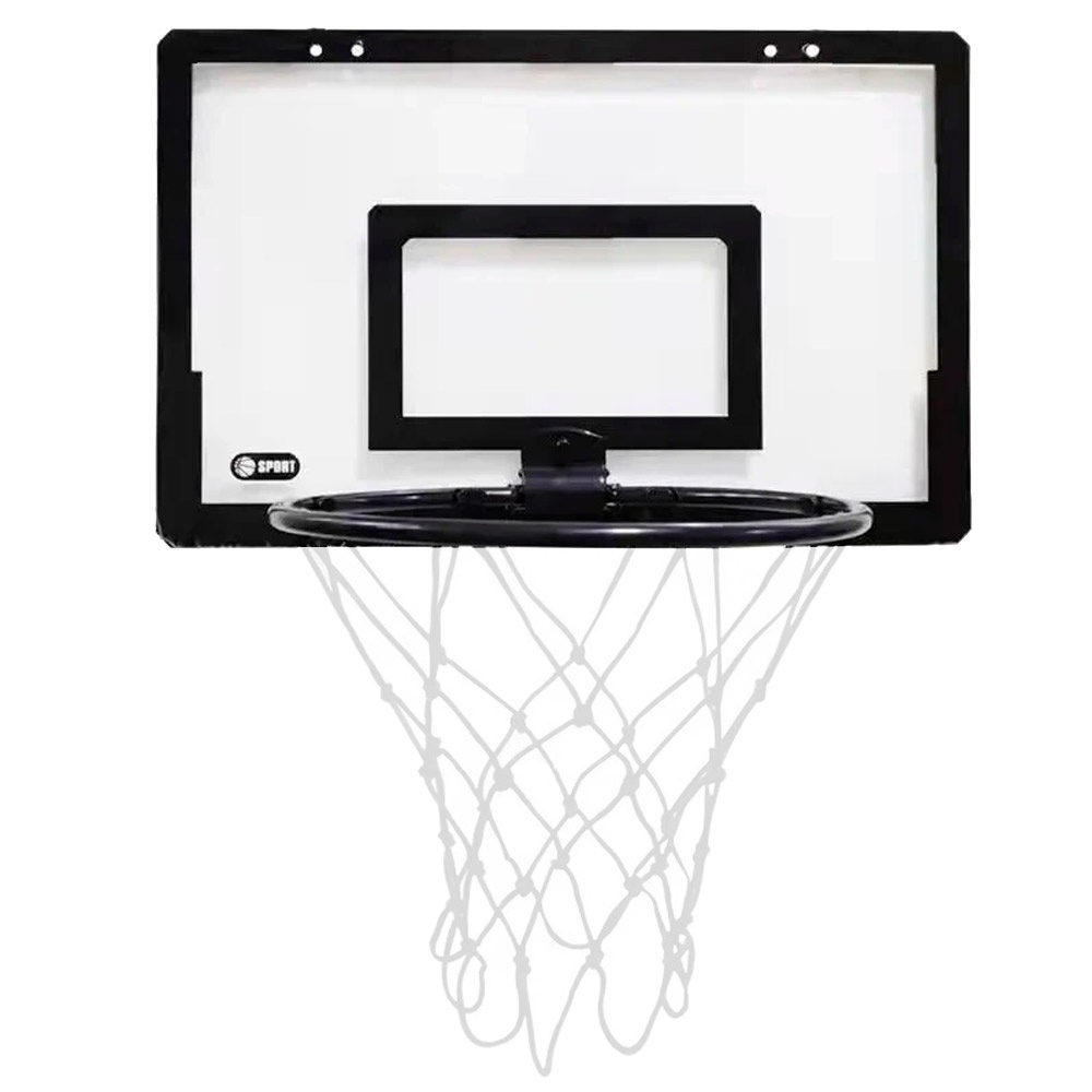 In setplacă de baschet, un coș de baschet, o plasă, un cârlig, o minge, pompă