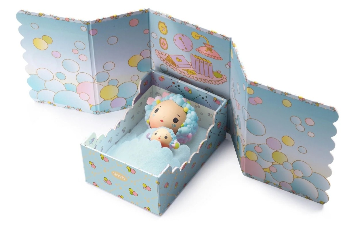 În interiorul acestei mici cutii magice, te așteaptă dormitorul lui Blue, unde figurinele Tinyly se pot cuibări sub pături și se pot îmbarca în aventuri încântătoare.