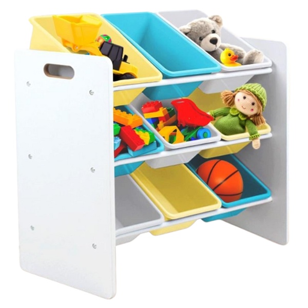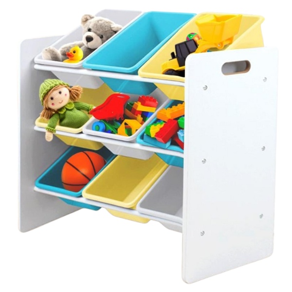 Acest raft din PAL cu 9 coșuri din polipropilenă este soluția ideală pentru organizarea jucăriilor, hainelor, cărților sau accesoriilor. Este conceput special pentru camerele copiilor, fiind practic, colorat și ușor de utilizat de cei mici.