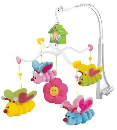 Melodiile sună până la câteva minute și dezvoltă percepția sunetului bebelușului. Culorile contrastante și diferitele modele geometrice au un efect pozitiv asupra dezvoltării vederii. Acesta este atașat de pătuț cu o clemă de încredere. În plus, mobilul poate fi atașat de cărucior sau deasupra covorașului de divertisment.