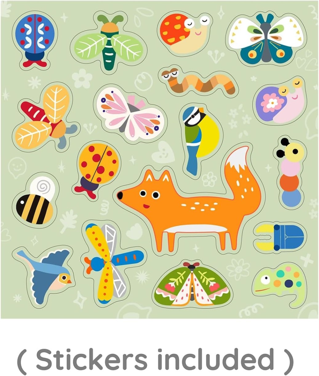 Acesta este un puzzle magnetic cu imagini, cu tematică de insecte. Include o varietate de piese colorate pentru a crea fluturi, libelule și gândaci frumoși. Copiii pot crea o grădină magnifică. Își pot începe aventura în această lume a insectelor.