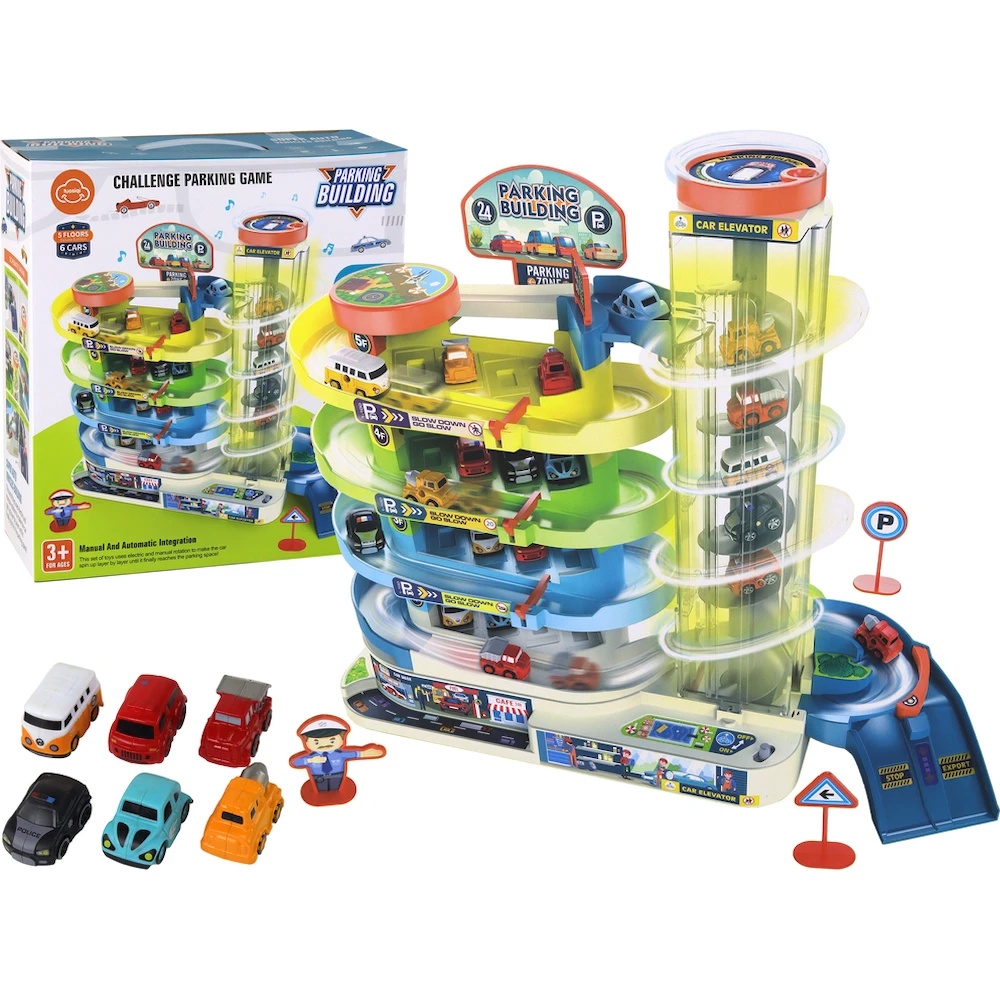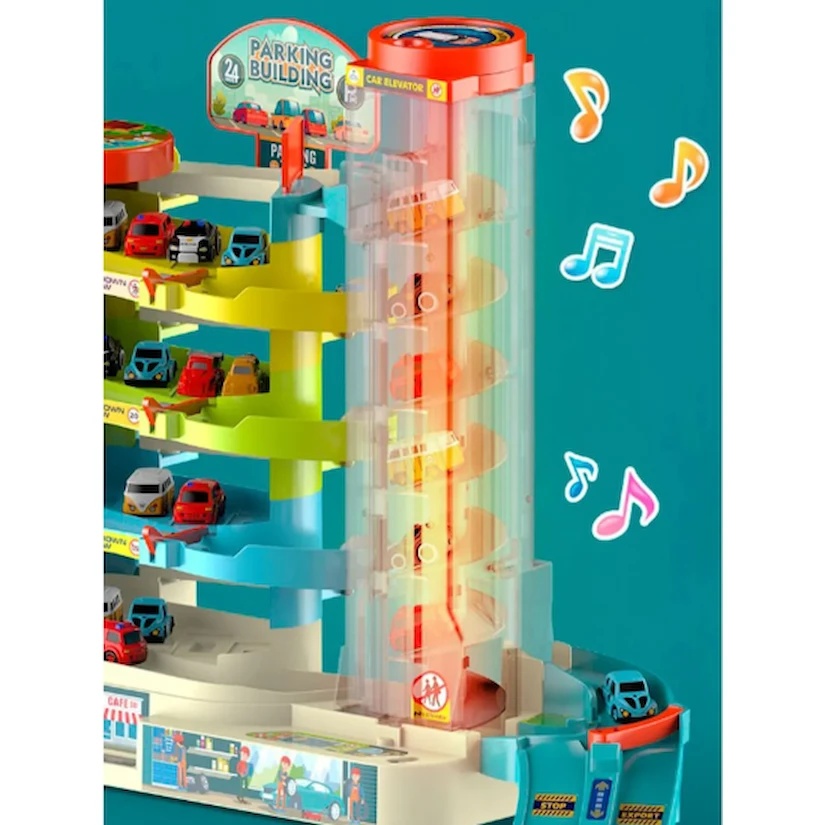 Oferiți copilului dvs. posibilitatea de a crea propriul oraș în miniatură cu această parcare supraetajată! Setul include 4 etaje, heliport, lift electric și 6 mașinuțe, garantând ore întregi de distracție captivantă.