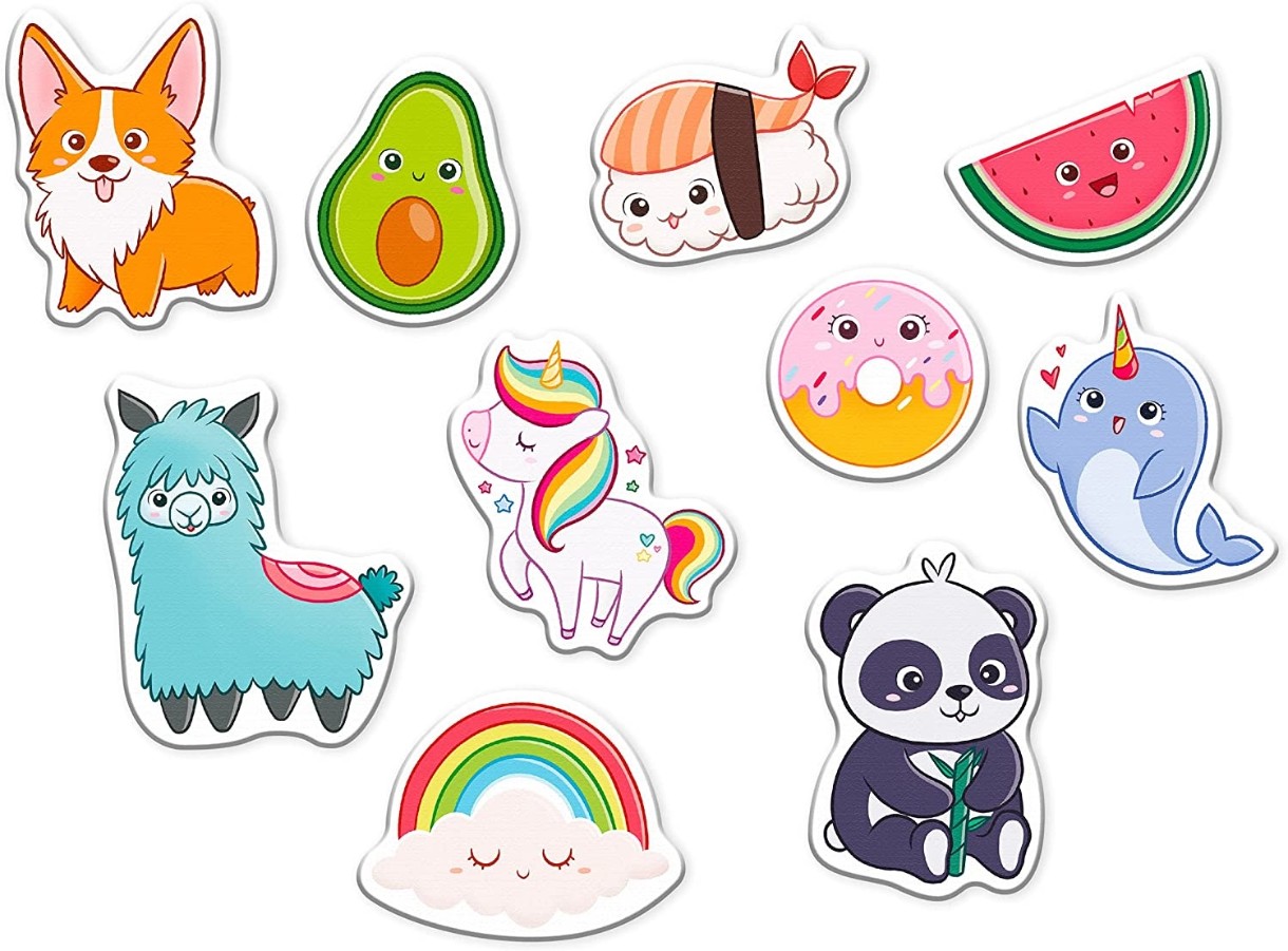 48 de litere, 48 de numere magnetice și 10 magneți pentru a compune primele cuvinte, pentru a face primele operații sau pentru a scrie mesaje colorate pe ușa frigiderului sau pe orice suprafață metalică.