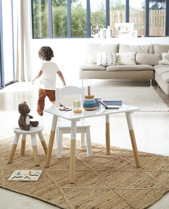 Un mobilier adaptat la înălțimea copilului ajută copilul să crească: a face, a dezface și a pune lucrurile la loc în ritmul său este o etapă cheie în învățarea acestuia.