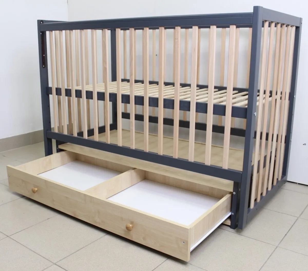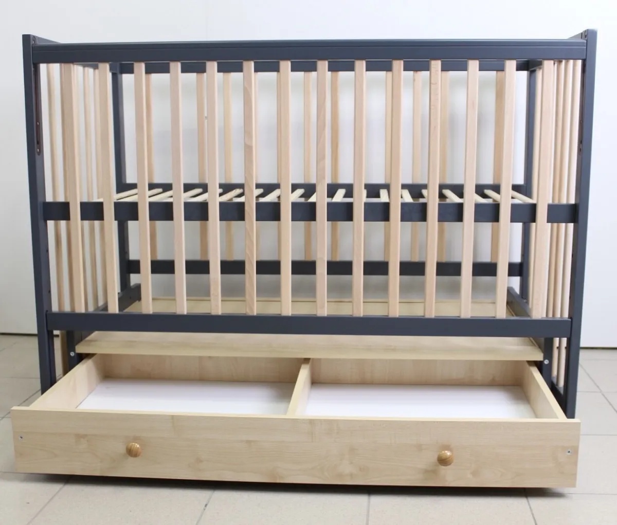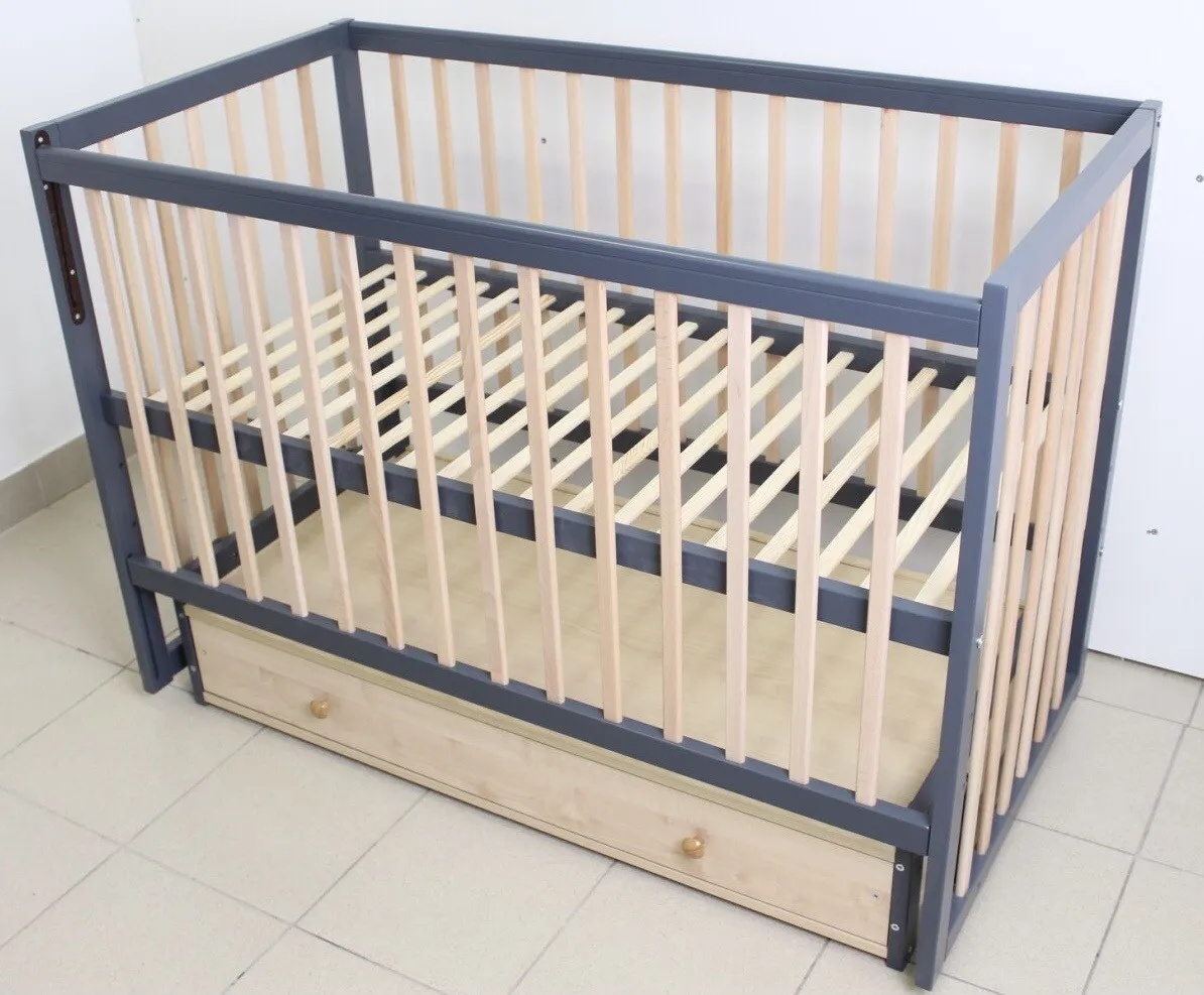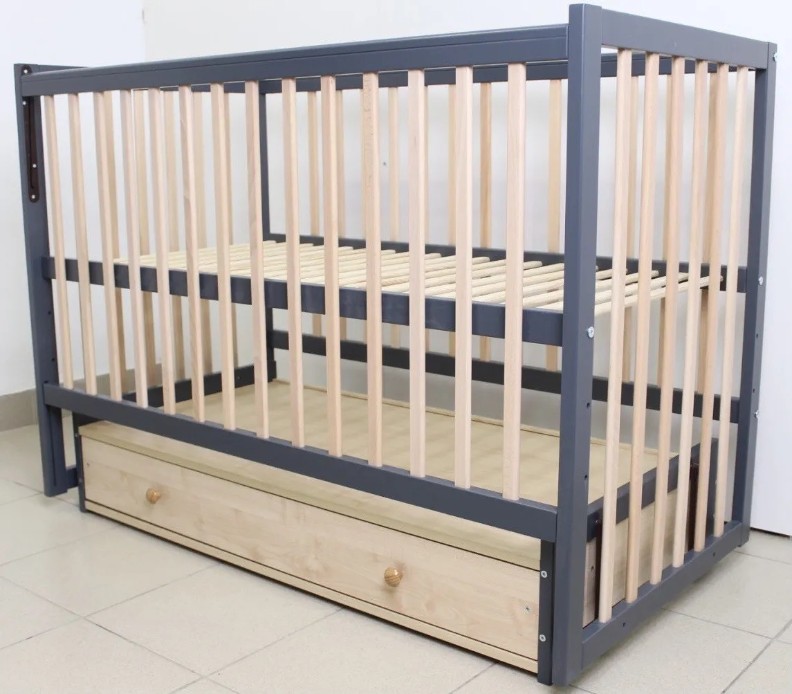 Pătuţ Кузя София Антрацит Натур на маятнике с ящиком