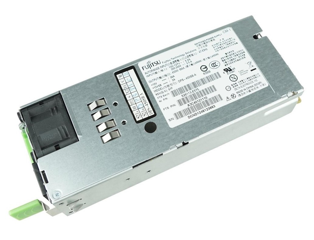 Sursă de alimentare modulară Fujitsu Hot-Swap, 450W, certificată 80 Plus Platinum. HOT PL RX100S7p/RX200S7/RX300S7 (S26113-F575-L10).