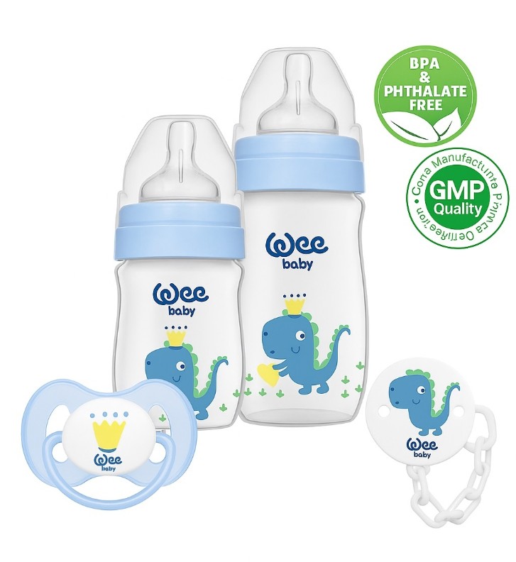Set biberone pentru bebeluș Wee Baby Little Dinosaurs Series Blue