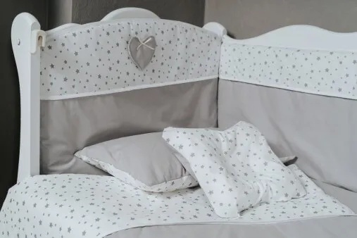 Protectie laterala pentru patut PernaMea Stele Gri 120x60cm