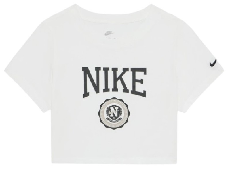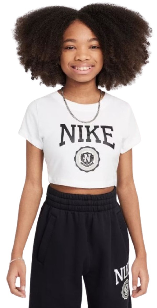Tricoul scurt pentru fete Nike G NSW Tee Graphic Star Crop White este un model stilat și confortabil, ideal pentru fetele active.