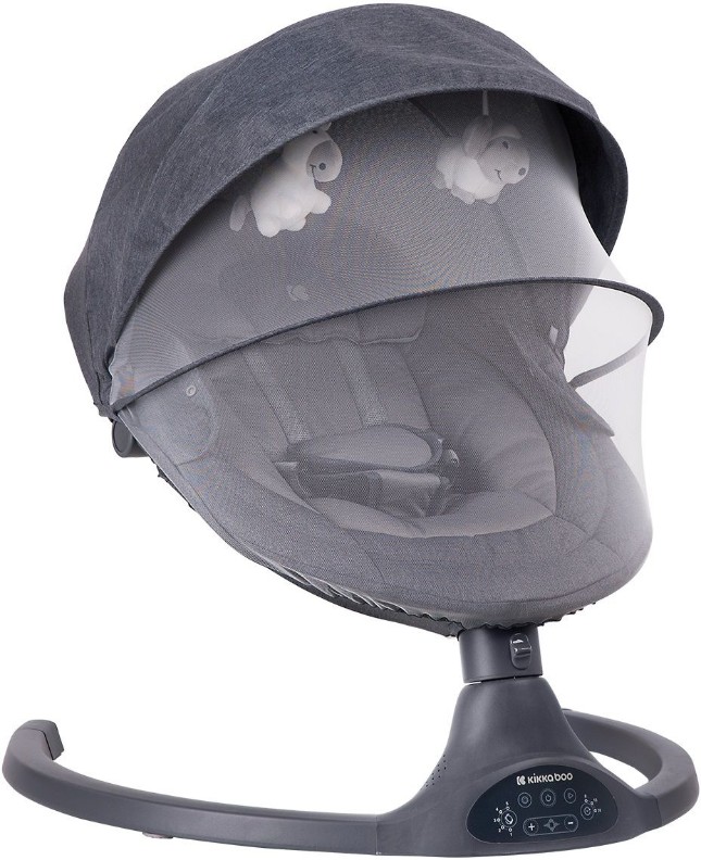 Cadru ușor din aluminiu. Balansare absolut silențioasă de la o parte la alta. Funcție de balansare cu 5 viteze. Buton de blocare a balansului. Afișaj cu ecran tactil. Panou muzical cu 10 melodii și control al volumului. Timer pentru 8, 15 și 30 de minute. Spătar reglabil. Capotă detașabilă cu plasă de țânțari și parasolar extins.