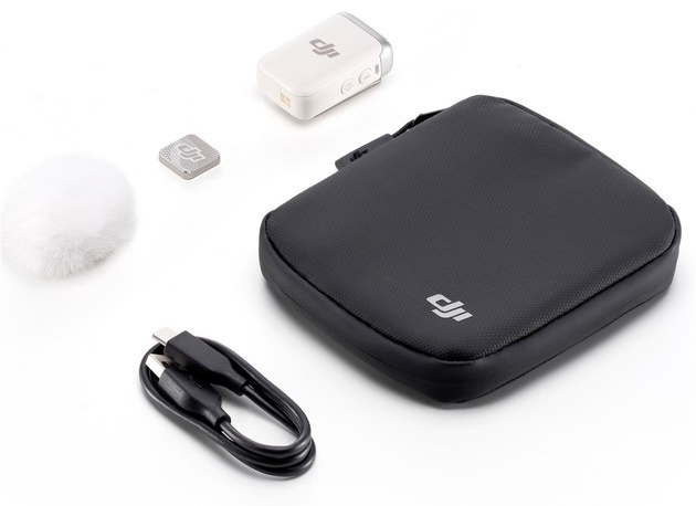 Set completTransmițător DJI Mic, clip magnetic, cutie de depozitare, cablu USB-A la USB-C, protectie impotriva vantului