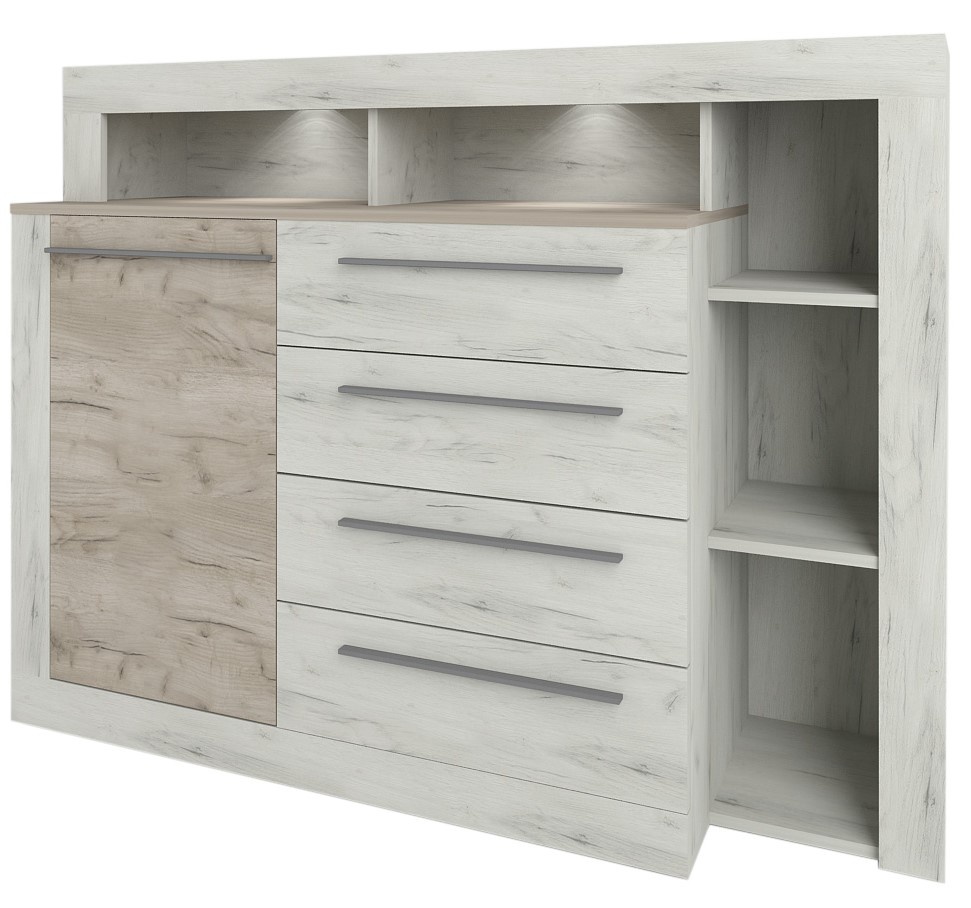 Specificații Comodă Sokme Милана 1400 Stejar Craft Alb/Stejar Craft Gri