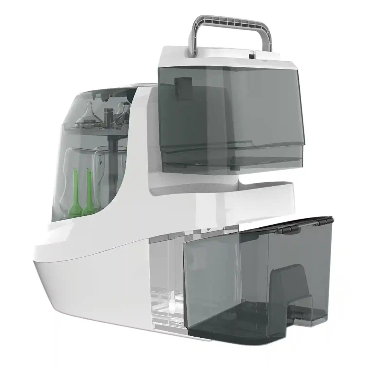 Spală, sterilizează și usucă automat biberoane, tetine, căni de apă și inele de dentiție;