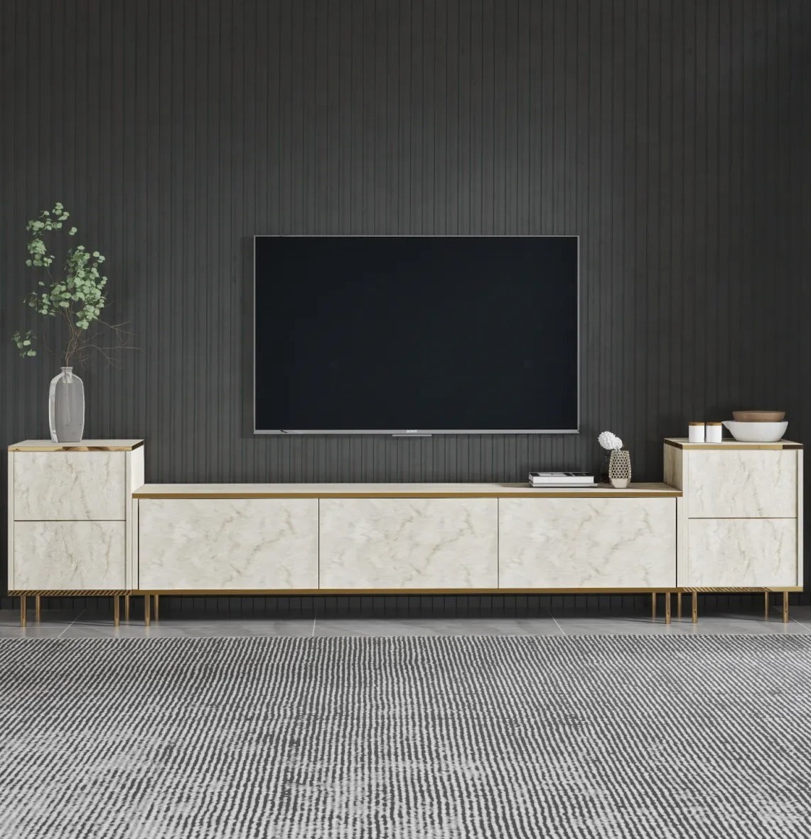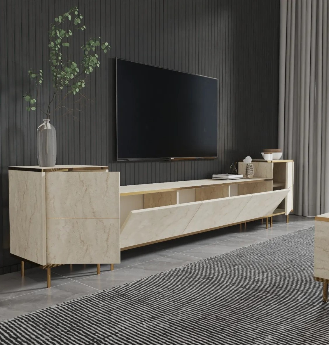 Comodă TV Trendy Imaj Travertin/Gold 260x60x35cm GTR006464