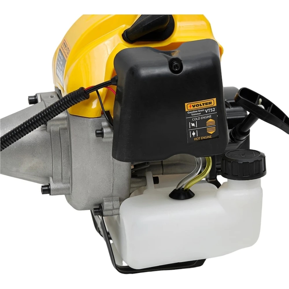 Trimmerul pe benzină Volter VT 52 cu mâner tip „bicicletă” reglabil este conceput pentru tunderea gazonului și a ierbii din jurul trunchiurilor de copaci și de-a lungul aleilor din curte. Înlocuind firul cu o lamă de tăiere, poate fi folosit pentru cosirea vegetației uscate, a buruienilor dure și a arbuștilor mici.Trimmerul este echipat cu un arbore de transmisie rigid, care asigură fiabilitate și durabilitate maximă. În setul de livrare sunt incluse o rolă de nailon cu fir și o lamă metalică cu 3 tăișuri.Sistemul antivibrații și construcția echilibrată oferă confort sporit în timpul utilizării. Toate elementele de control sunt integrate în mânerul ergonomic, pentru operare ușoară.Pompeta de amorsare (primer) asigură o pornire rapidă și reduce efortul asupra demarorului. Accesul facil la filtrul de aer și la bujia de aprindere permite întreținerea regulată fără a fi nevoie de un centru de service.