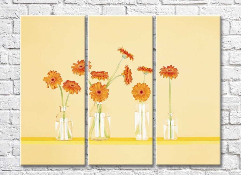 Pictură Rainbow Orange gerberas in glassware on a beige background (500487)