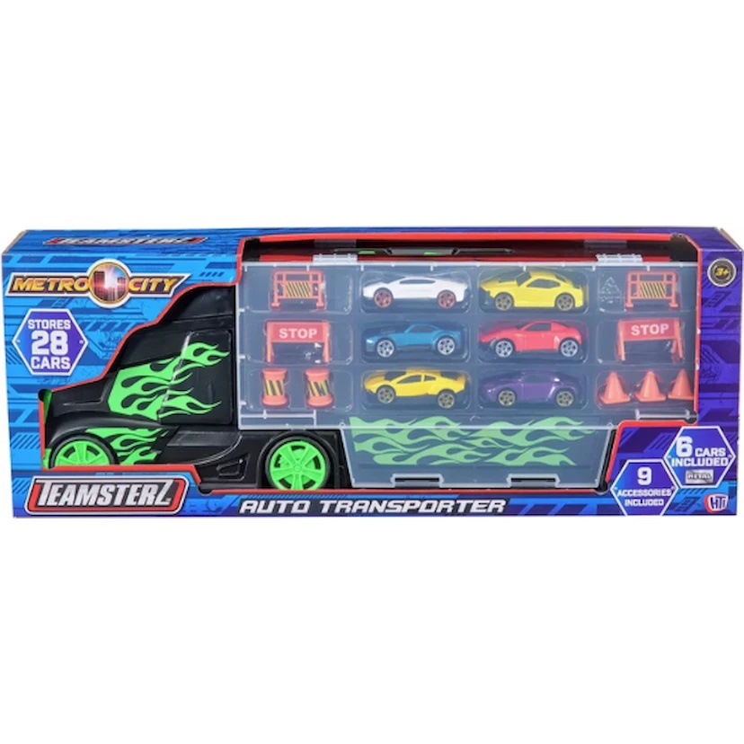 ransportă-ți mașinuțele preferate Teamsterz cu Teamsterz Metro City Medium Auto Transporter! Acest transportor rezistent, cu mâner pentru transport și roți libere, este cadoul perfect pentru micii pasionați de mașini.