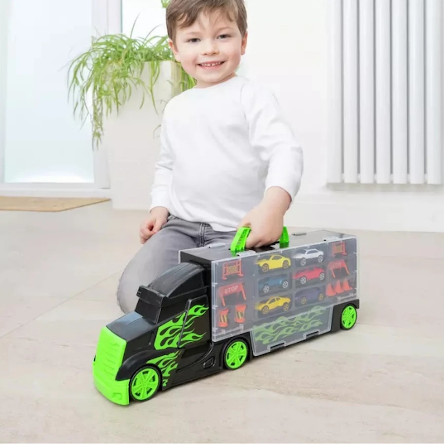- Capacitate de stocare pentru 28 de mașinuțe (include 6 mașinuțe Teamsterz)